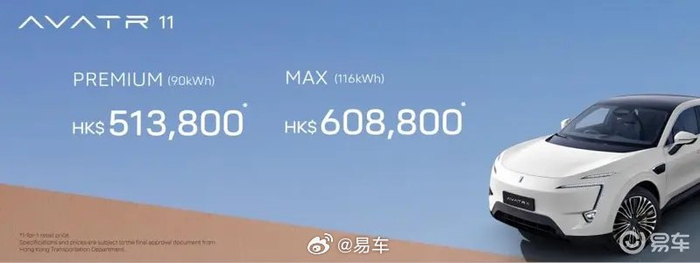 #新车速递#【阿维塔11香港正式上市 售51.38万港币起】5月29日,阿维塔品牌及阿维塔11在香港正式发布,其中阿维塔11推出Premium版与Max版两款配置,官方指导价为51.38万和60.88万港币,折合人民币约为47.10万元和55.81万元。 本次在香港上市的阿维塔11搭载宁德时代三元锂电池,配备座椅通风、按摩、“一键躺平”和英国之宝音响系统等配置。另外,阿维塔与国际时尚大师Kim Jones联合打造的限量联名车型阿维塔012也首次亮相香港。