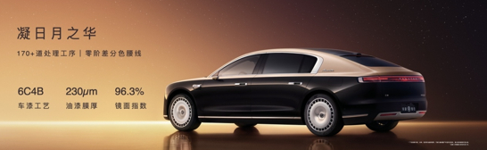 车身方面,尊界S800自然流线车身设计搭配大视野纯平侧窗,风阻系数低至0.206cd 。双色车身采用6C4B车漆工艺,历经170+道工序精雕细琢,实现零阶差分色腰线效果 。车身漆膜厚度达到230μm,镜面指数96.3%。提供21英寸25孔日耀、20英寸12孔晖月、20英寸30辐星辉与20英寸低风阻轮毂四款轮毂 ,将科技与艺术凝练于每一处细节。