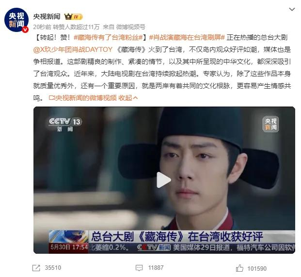 5月31日,“肖战演藏海在台湾刷屏”冲上微博热搜。
