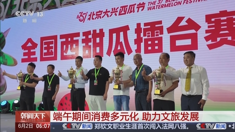 在北京,第37届北京大兴西瓜节多场活动正在陆续开展,其中全国西瓜擂台赛吸引了来自全国各地的参赛者带来千种瓜品同台比拼,决出了大型西瓜重量组、新品种组和创意西瓜奖等奖项。端午节期间,各具特色的西瓜节主题活动轮番上演,通过“商圈+市集”“公园+市集”等创新模式,融合了音乐会、特色餐饮等多元业态,打造沉浸式假日文旅体验。