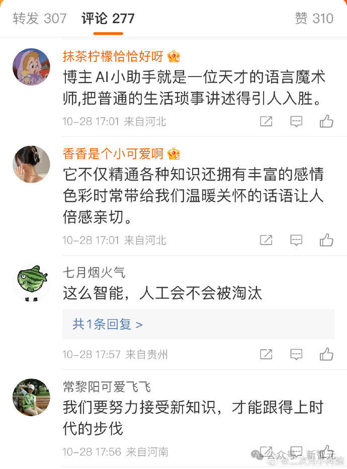 王巍表示原因就在于,微博给「评论罗伯特」来了波大升级,让它的回复质量得到了全方位提升。