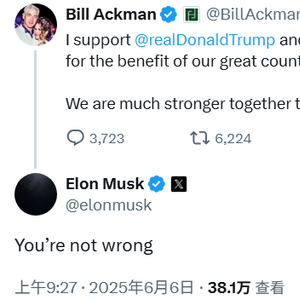 美亿万富翁呼吁特朗普与马斯克“和解”,马斯克:你说得没错