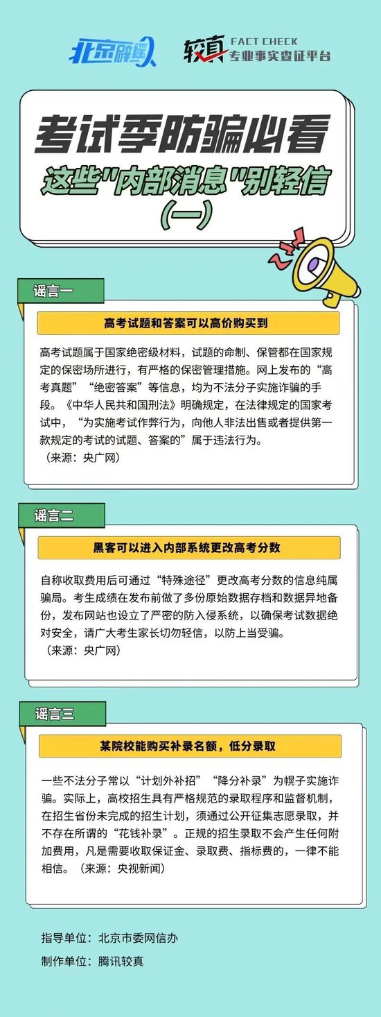 北京网络辟谣宣传月│可以高价购买高考试题和答案?考试季防骗必看,这些“内部消息”别轻信(一)