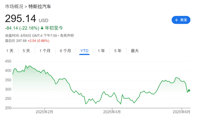 回顾特斯拉股价表现,虽然曾在2024年12月因市场对新一届特朗普政府的利好预期而创下历史新高,但截至今年6月6日,其股价已较彼时的479.86美元高点下跌了38%,年内跌幅超过22%,表现远逊于同期上涨约2.25%的标准普尔500指数。