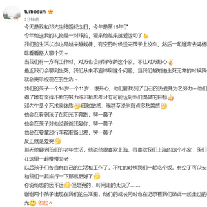 “那天他聊到我们的老年生活,他说他很喜欢上海,很喜欢我们上海的这个小家,我们要在这里一起慢慢变老~以后孩子们各自有自己的生活和工作了,不忙的时候我们一起吃个饭,有空了可以安排和我们一起旅行一下那就更好了。你说他想得远不远,但是真的,时间走得太快了……谢谢两个孩子出现在我们的生活里,他们的成长同时也在记录着我们彼此一起走过的时光。”