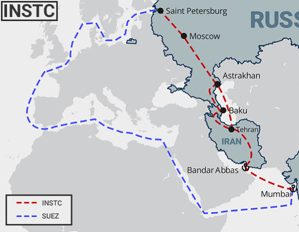 在我看来,国际南北运输走廊(INSTC)是改变21世纪游戏规则的地缘经济/基础设施工程之一。其核心是连接了三大金砖国家——俄罗斯、伊朗和印度,延伸至高加索和中亚地区。一旦全面投入运营,这条走廊将为欧亚大陆绝大部分地区提供一个免受制裁,相比苏伊士运河更便宜、更快捷的贸易和互联互通走廊。