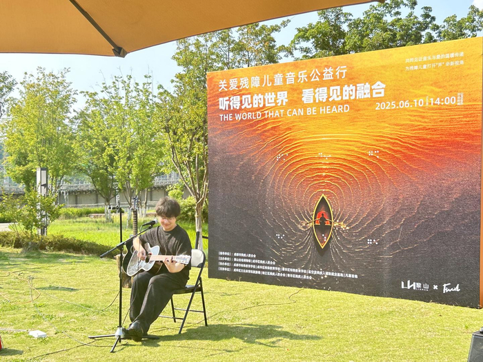 6月10日,成都高铁城市公园的草坪上传来动人的吉他声。由黎山吉他博物馆发起的《听得见的世界 看得见的融合》慈善音乐会在这里举行。