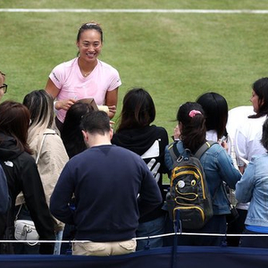 △当地时间2025年6月9日,英国伦敦,郑钦文与球迷合影。