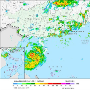 中央气象台预计,6月13日20时至14日20时,海南岛大部、广西东南部、广东中南部、福建东部和南部及台湾岛南部等地有大到暴雨,其中,海南岛西部、广西东南部、广东西南部等地部分地区有大暴雨,海南岛西部局地有特大暴雨。