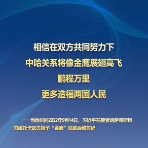 习近平主席指出,相信在双方共同努力下,中哈关系将像金鹰展翅高飞,鹏程万里,更多造福两国人民。