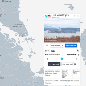 船舶追踪网站Marine Traffic的数据显示,当地时间16日早上,“尼米兹”号离开南海,向西朝中东方向航行。