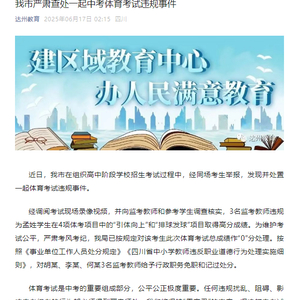 一中考生体考违规得高分,四川达州:考生0分,3名监考教师被处分
