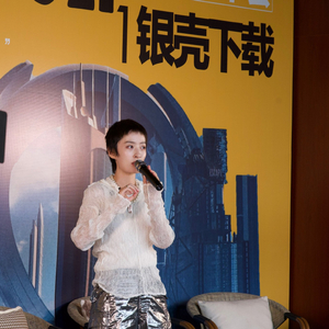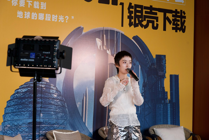 曾轶可在自己的首部长篇科幻小说《TAYOUZI1 银壳下载》新书发布会上与读者互动。