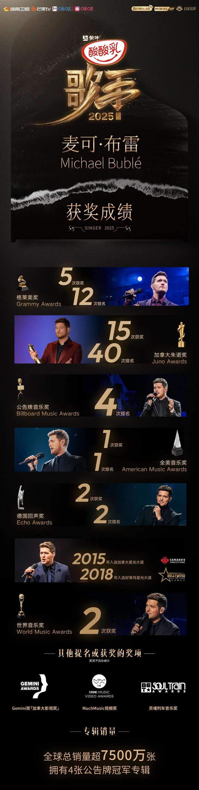 节目官宣后,网友在社交平台热传这段跨越十年的音乐缘分,而拥有5座格莱美奖杯、12次提名的麦可·布雷以及其圣诞专辑《Christmas》,是所有人热议的话题。