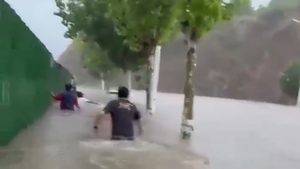 18日开始,重庆出现大暴雨天气。18时前后,重庆市彭水县的多个乡镇遭暴雨袭击,出现山洪汛情,部分道路中断。彭水县太原镇高桥村街道被洪水淹没,不少车辆在洪水中漂移,目前暂无人员伤亡报告。