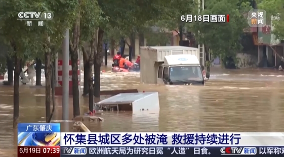 6月18日7时05分,广东绥江怀集站(肇庆市怀集县怀城街道)出现55.22米的洪峰水位,超警5.22米(警戒水位50.0米),为建站以来历史最大洪水。19日,积水较18日上午下降超过1米,截至目前,广东5000多人集结,投入抢险救灾。