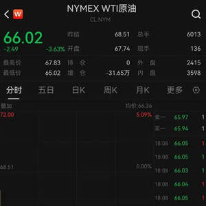 受此影响,国际油价大幅走低,美国WTI原油期货亚市盘初一度跌逾5%,截至发稿,跌幅收窄至3.63%,报66.02美元/桶。