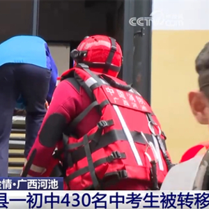 央视网消息:6月22日,广西河池市天峨县因持续强降雨引发洪水倒灌,导致城区多处严重积水。天峨县民族中学因积水严重,校内即将参加中考的430名学生被围困在宿舍楼。来看总台记者23日中午从民族中学发回的报道。