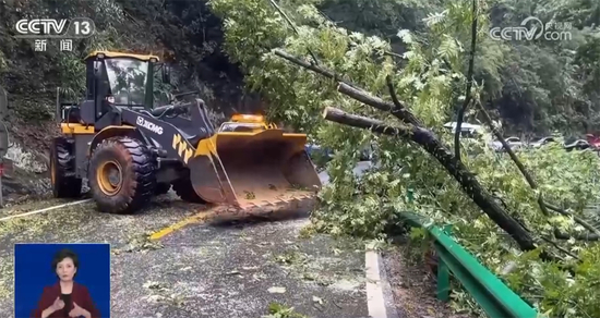 江西九江:雨水冲刷大树倒伏 公路部门冒雨抢通国道
