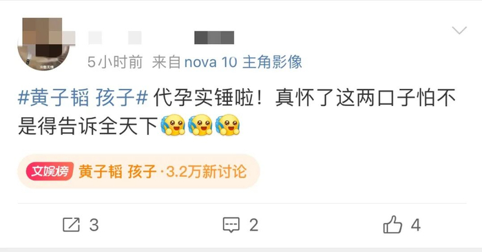 不过,事件很快走偏,当天中午,一些网友的猜测将事件引向了“代孕生子”的说法。