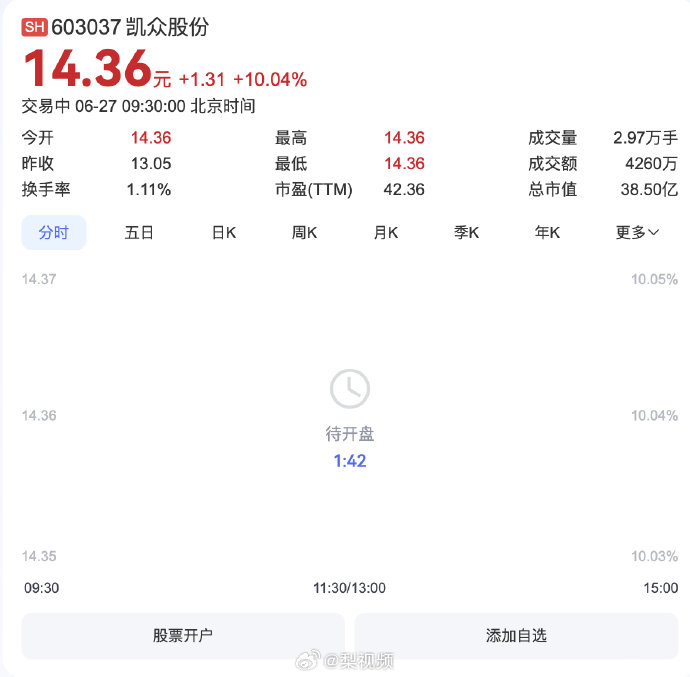 【#小米汽车板块大爆发#】6月27日,小米汽车板块高开,凯众股份涨停,海泰科、富特科技涨超10%,无锡振华、泰鸿万立涨幅居前。消息面上,昨晚小米YU7正式发布,1小时大定突破28.9万台。 (同花顺)#小米发布会后股价飙涨##AI眼镜概念集体走高#
