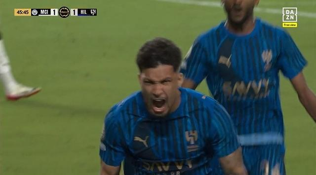 第46分钟,新月右路配合,传中打到门前,一片混乱之中皮球被挡弹起!莱昂纳多头球破门!新月1-1扳平曼城↓