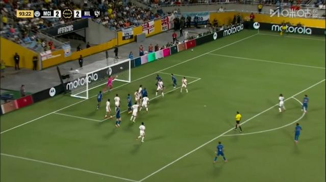 都94分钟,利雅得新月左侧角球机会!鲁本-内维斯“锁头”精准传中,库利巴利在两人夹击下头球破门!新月3-2再次领先曼城↓