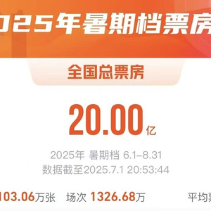 据网络平台数据,截至7月1日20时53分,2025年暑期档(6月—8月)总票房(含预售)突破20亿。