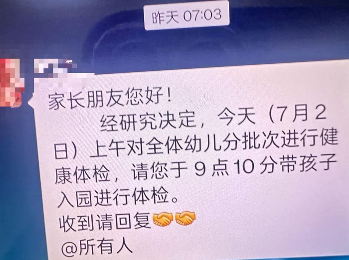 7月2日,幼儿园的群通知(受访者供图)