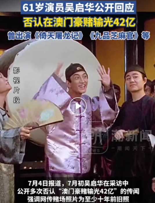 61岁演员吴启华回应被传澳门豪赌,否认输光42亿:肯定不是我