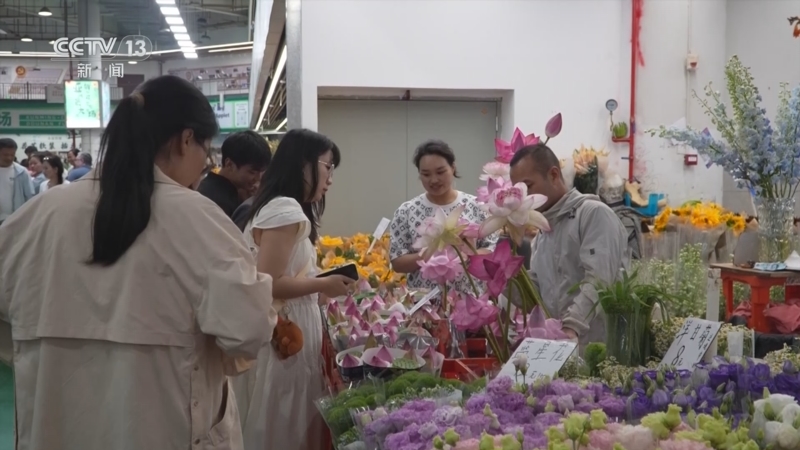 现在正值夏季,云南也有不少应季鲜花。比如成团成簇、色彩鲜艳的绣球花就是夏日鲜花市场的主角之一。这样一捧清新淡雅的荷花是入夏后人气相当红火的销冠。