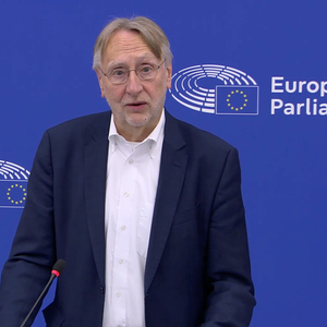 △当地时间9日,欧洲议会国际贸易委员会主席贝恩德·朗格在比利时布鲁塞尔举行发布会。