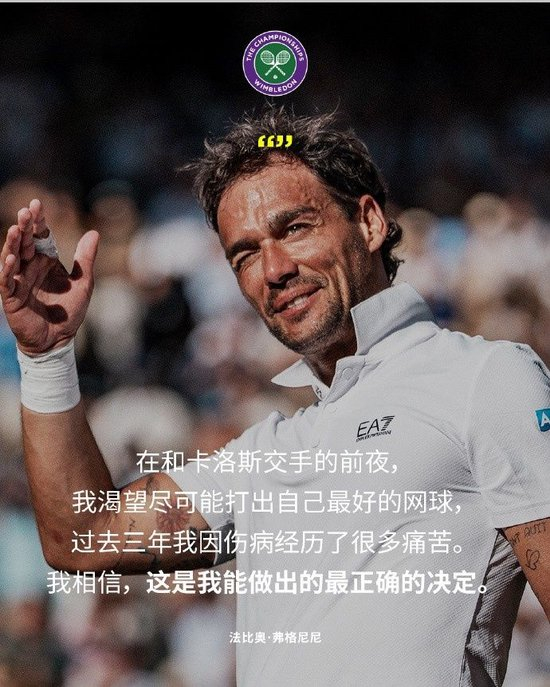 今年温网男单首轮,弗格尼尼2-3遗憾不敌阿尔卡拉斯,职业生涯就此结束。