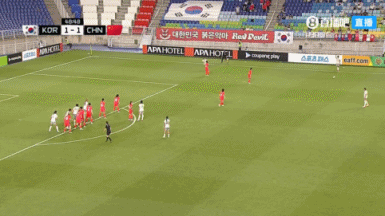 第44分钟,韩国女足左路传到禁区汪琳琳与潘红艳配合失误,姜綵林头球被潘红艳回追在门线将球扑出。↓