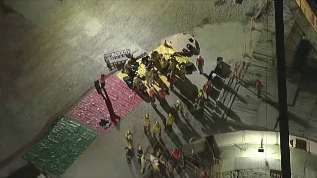 航拍洛杉矶一隧道坍塌致15人被困 塌方疑损毁通信线路与被困者断联