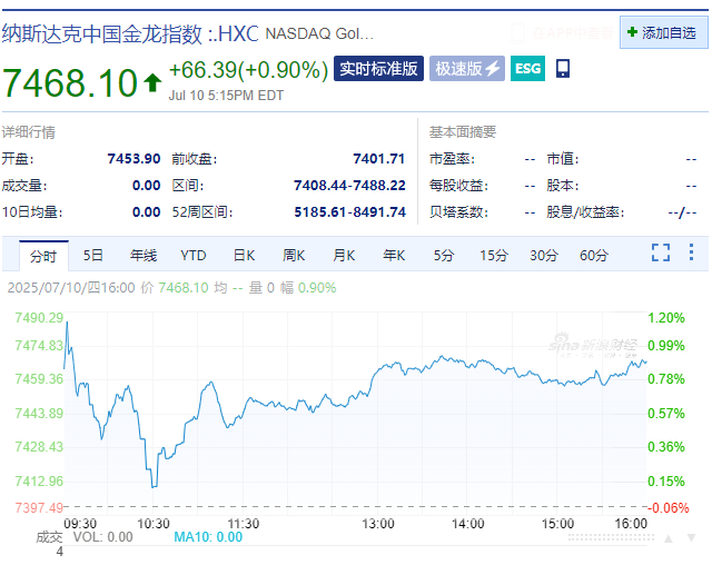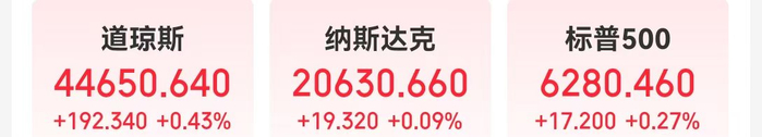 当地时间7月10日,截至美股收盘,纳指收盘涨0.09%,标普500指数涨0.27%,两大指数均创下收盘新高,道指涨0.43%。