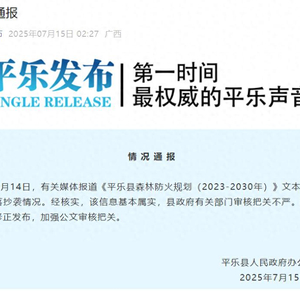 7月14日,有关媒体报道《平乐县森林防火规划(2023-2030年)》文本存在个别段落抄袭情况。经核实,该信息基本属实,县政府有关部门审核把关不严。我县将及时修正发布,加强公文审核把关。