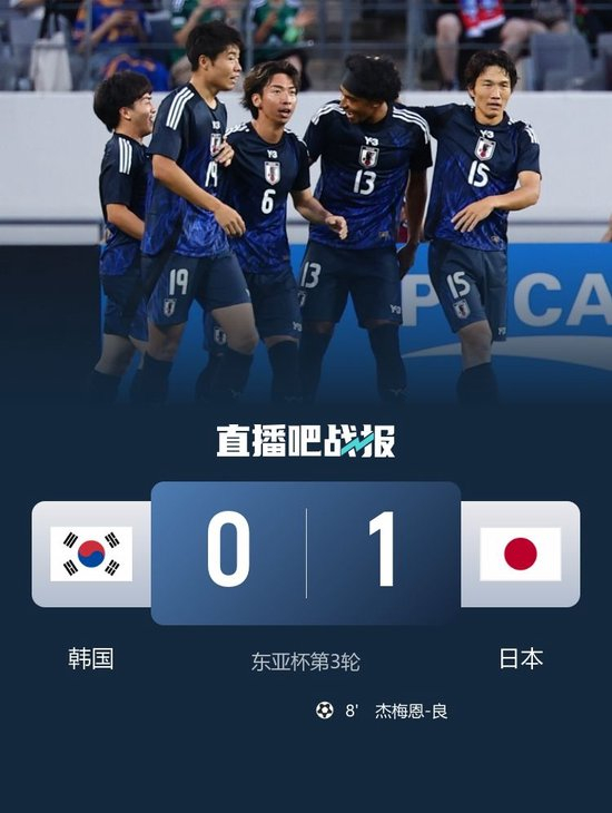 直播吧7月15日讯 北京时间18:24,东亚杯第3轮韩国vs日本。上半场,罗相镐低射中柱;杰梅恩-良凌空抽射破门。下半场,李泰锡、李昊宰造险,大迫敬介扑救力保城门不失。最终,日本队1-0击败韩国队,东亚杯3战全胜夺冠。