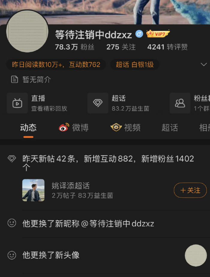 近日,有网友发现,综艺节目《奔跑吧》导演姚译添将个人账号名称改成@等待注销中ddzxz ,并且清空了全部微博,引发关注。