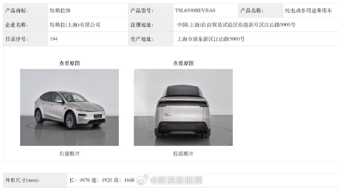 特斯拉Model Y L 外观正式公布:预估售价40万