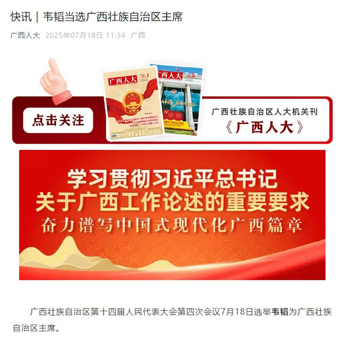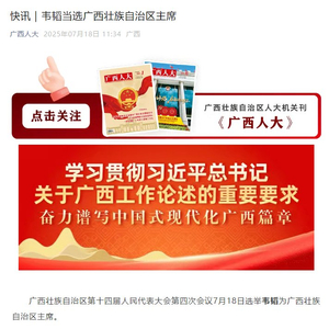 韦韬当选广西壮族自治区主席 新京报 新京报官方账号 2025.07.1811:38 关注 新京报讯 据广西人大微信公众号消息,广西壮族自治区第十四届人民代表大会第四次会议7月18日选举韦韬为广西壮族自治区主席。 编辑 辛婧