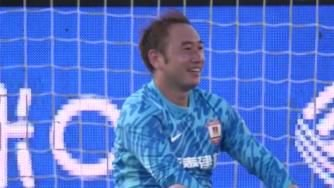 第45+1分钟,海港右路撞墙配合后王燊超下底传中,门前阿不都海米提无人干扰解围低级失误将球踢进自家大门,门将吴亚轲也没能完成救球,亚泰0-1海港↓