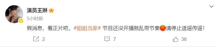 在此前放出的《姐姐当家》预告片中,王琳刚说完“你是不是觉得,你是我的儿子是可耻的”,下一个镜头紧接着就是她说“17岁的时候一个耳光过来,正好打在牙上”,令不少网友猜测王琳所说打自己耳光的人是前面提及的儿子王诺。在王琳微博回应之后,节目预告片中已经没有了这个引起网友热议的片段。