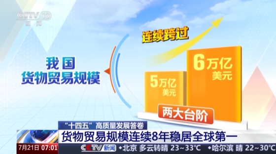 “十四五”期间,我国外贸在全球变局中逆势上扬,顶住压力、稳中提质。