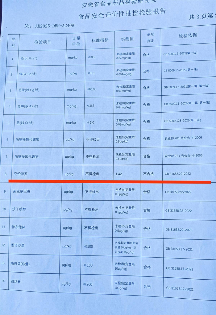 读者介绍,今年4月,合肥市市场监管局检查了当地两家公司的牛肉,结果检测出了“克伦特罗”,即人们俗称的“瘦肉精”,这是国家明文禁止检出的。