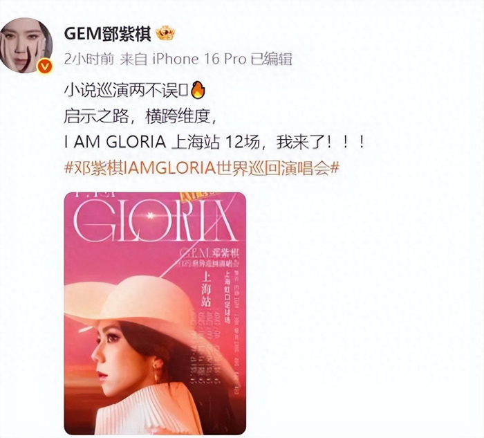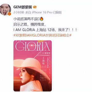 7月22日,歌手邓紫棋在社交平台上发文:“I AM GLORIA上海站12场,我来了!”演出地点是上海虹口足球场,日期为2025年8月29-31日,9月5-7日、12-14日、19-21日。