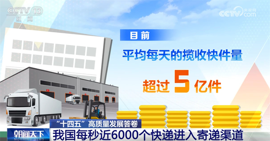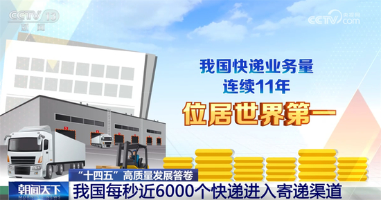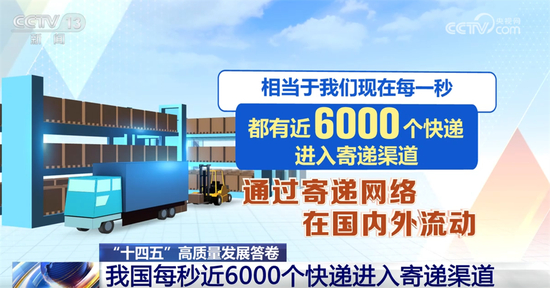 央视网消息:“十四五”期间,我国快递业务量年均增长20%,如今每一秒都有近6000个快递进入寄递渠道,通过寄递网络在国内外流动。