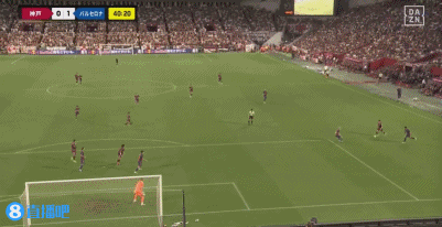 第42分钟,库巴西后场带球被断,神户反击第一下打门被扑,随后宫代大圣点球点附近得球转身低射扳平比分,神户胜利船1-1巴塞罗那。↓