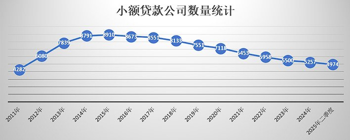 小额贷款公司数量在2015年达到顶峰后开始回落,第一财经统计,从2015年二季度到2025年二季度这十年间,小额贷款公司数量减少了3977家,降幅44.4%;贷款余额减少2233亿元,降幅23.3%;从业人员减少72070人,降幅63.2%。