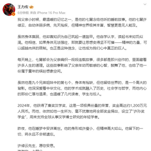 王力宏悼念七舅公许倬云:他曾将1200万元奖金全部捐出,他的身形或许瘦小,但精神高大如山